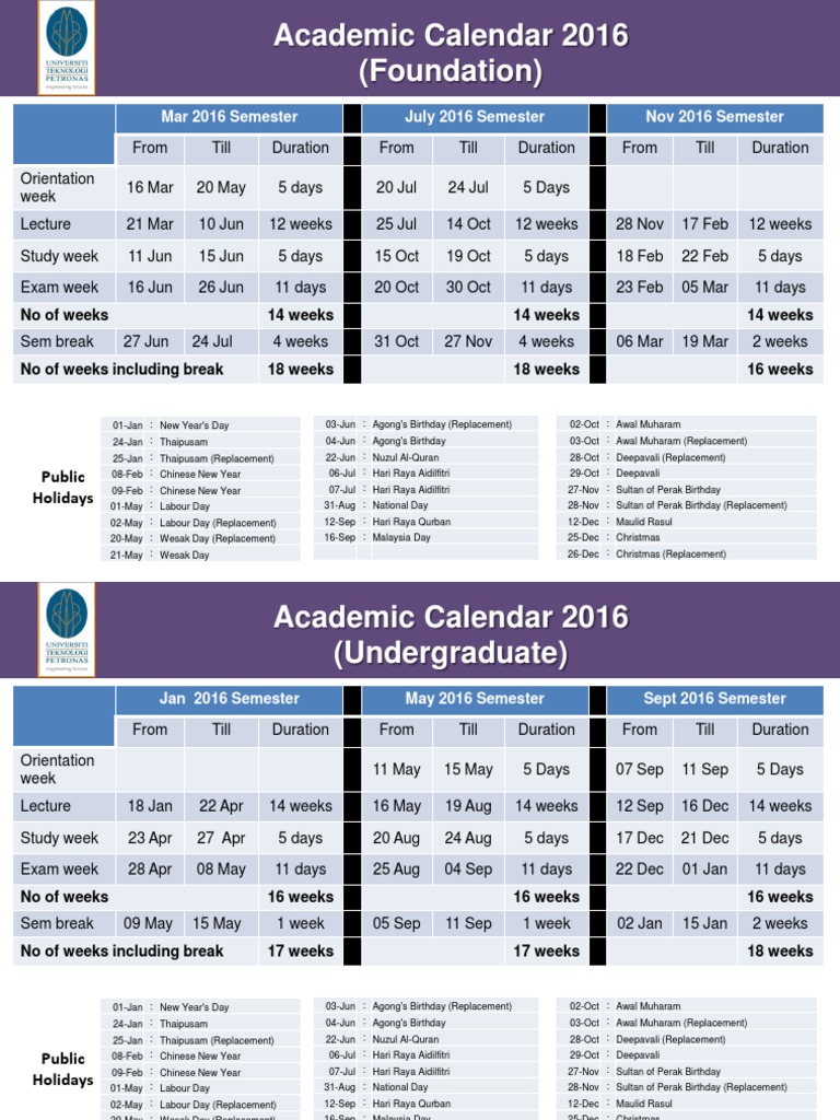 Utp Academic Calendar 2016 Pdf